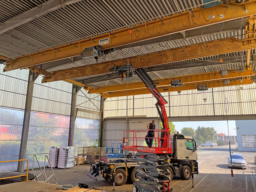 Die Krananlage wurde anschließend an den neuen Stahlbau montiert und in Betrieb genommen.